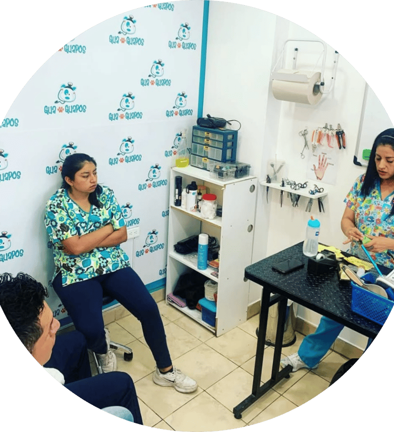 Nuestros profesionales están comprometidos con el desarrollo de una carrera profesional, que incluye el aprendizaje continuo y la formación en el campo de la peluquería canina. Todos nuestros instructores siguen la metodología Gua Guapos y han sido seleccionados y capacitados para transmitir la pasión por esta profesión.